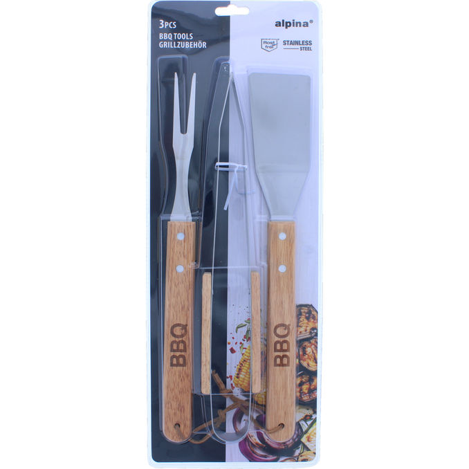 Alpina BBQ Tools er et sæt med tre uundværlige grillredskaber: Spatel, tang og gaffel. Perfekt til at vende, gribe og håndtere maden på grillen med præcision.