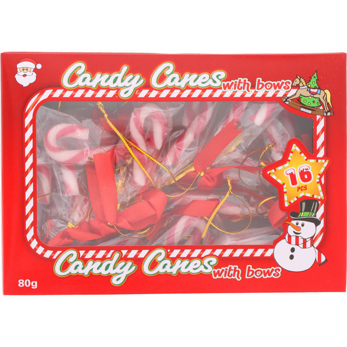 Slikstokke med sløjfer (80 g) er klassiske sukkertøjsstænger dekoreret med farverige sløjfer, som giver et festligt udtryk. De er ideelle som en sød gave, til pynt eller til at dele ved højtider og sammenkomster.