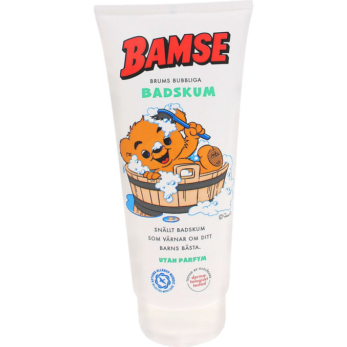Brums bobblende skumbad er et produkt som skummer herligt i badekarret og har en mild rengørende effekt. Parfymefri, certificeret af Astma og Allergi Nordic. Dermatologisk testet.