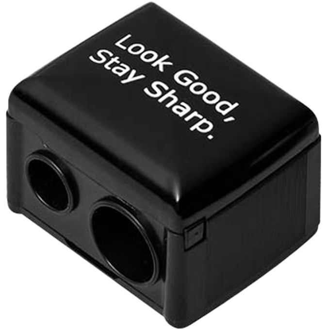 Denne Bangerhead "Look Good, Stay Sharp." er en praktisk dobbelt blyantspidser, der er uundværlig i enhver makeup-pung. Den er designet med to forskellige huller, så den passer til både tynde eyelinere og tykkere jumbo-blyanter, hvilket sikrer, at dine makeupprodukter altid er skarpe og klar til præcis påføring.