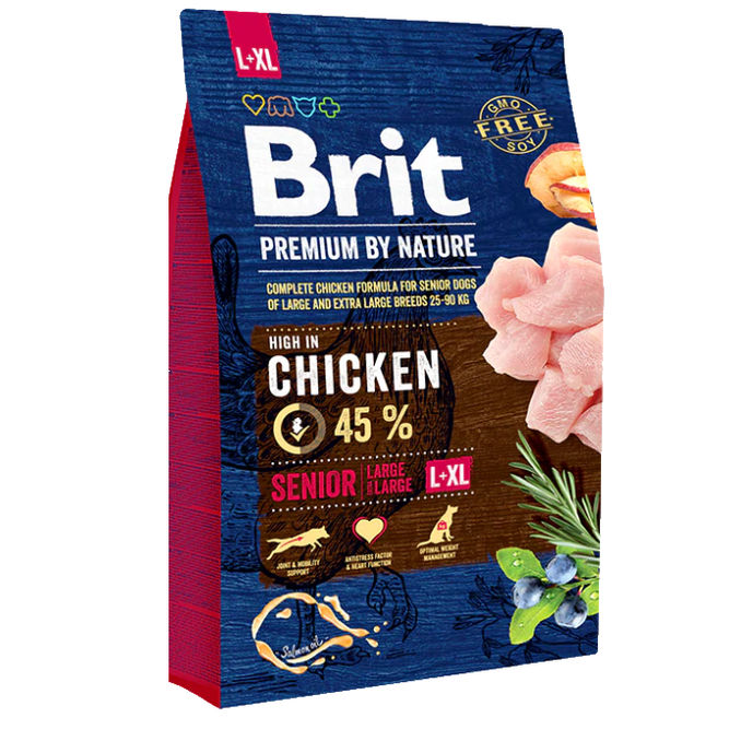 Komplet premiumfoder til ældre hunde af store og ekstra store racer med højt indhold af kylling. Opskriften er beriget med urter, bær og lakseolie, som støtter led, hjertefunktion og en sund vægt hos seniorhunde.