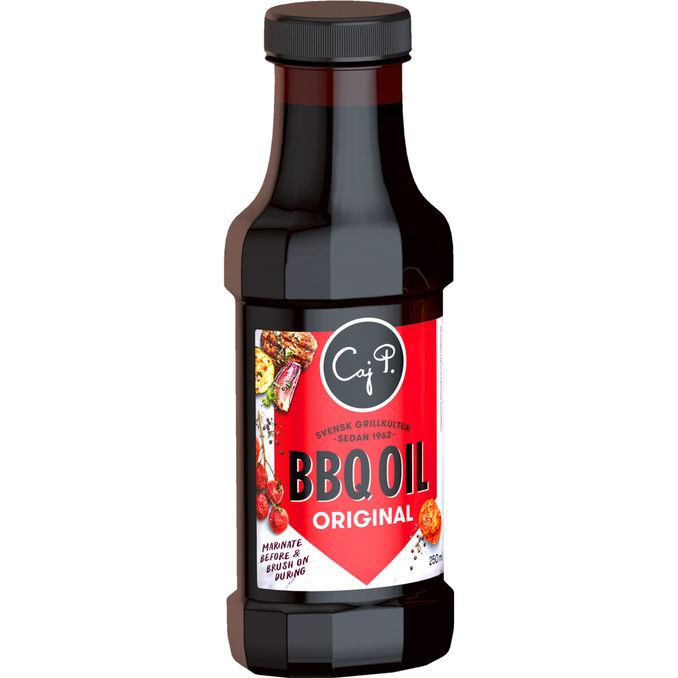 Caj P Original BBQ Grillolie (250 ml) er en smagfuld marinade med krydderier, der giver kød, fisk og grøntsager en lækker grillkarakter. Perfekt til både marinering og pensling under tilberedning.