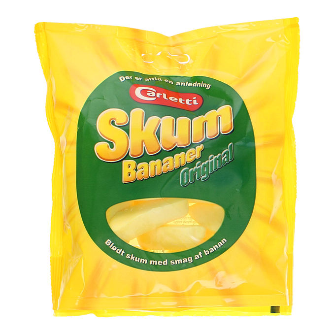 De originale skumbananer fra Carletti. Med en god og velkendt smag af banan, er de ægte nostalgi-slik, der passer til bananelskeren!