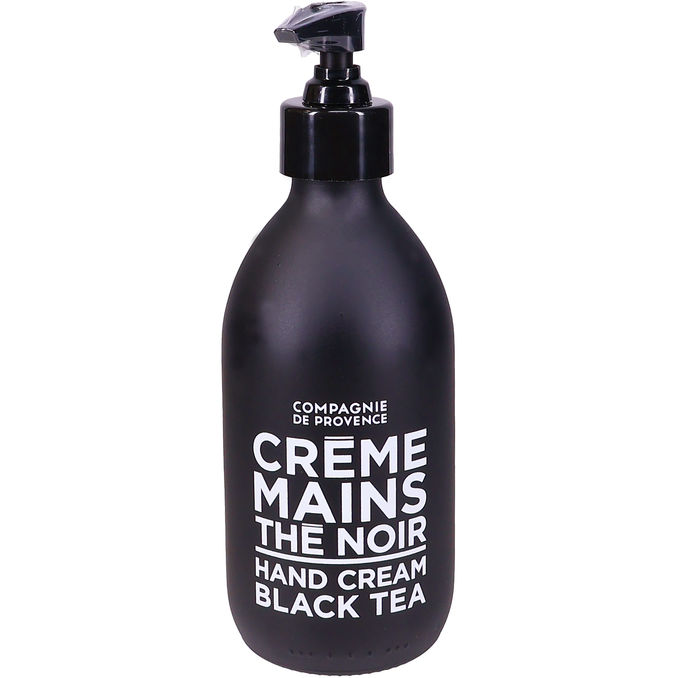 Compagnie de Provence Hand Cream Black Tea er en luksuriøs håndcreme, der giver intens fugt og pleje til tørre hænder. Den har en sofistikeret og varm duft af sort te og er præsenteret i en elegant, sort pumpeflaske, der kombinerer praktisk anvendelse med et stilrent design til hjemmet.