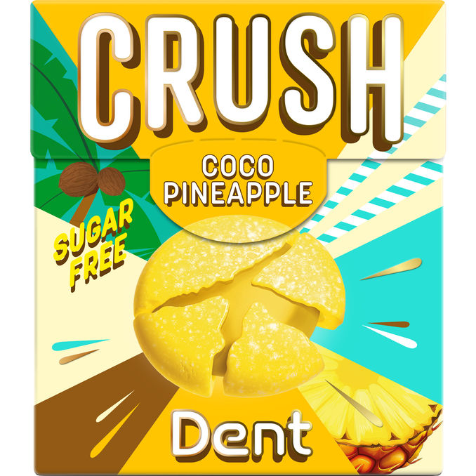 Crush Dent Coco Pineapple er en sukkerfri pastil med en tropisk og frisk smag af sød kokos og syrlig ananas. Den kompakte pakke på 25 g gør det nemt at få en eksotisk smagsoplevelse og frisk ånde på farten.