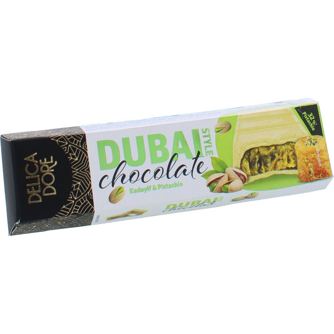 En blød og cremet hvid chokoladebar med en sprød og sød smag og et touch af pistacie, der smelter i munden. Perfekt til en hyggelig pause.
