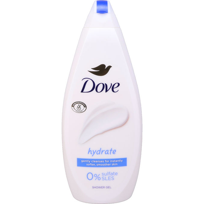 Dove Hydrate Shower Gel 720 ml er en fugtgivende kropsvask, der renser huden skånsomt og efterlader den gennemfugtet og blød efter badet. Den store flaske med praktisk pumpe er ideel til hverdagsbrug og sikrer en nem dosering af den milde formel.