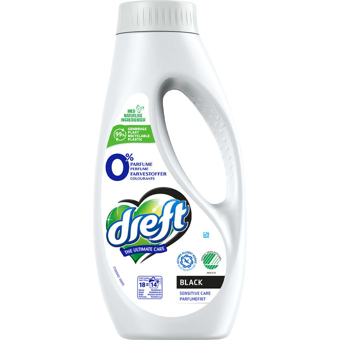 Dreft Sensitive Black Flydende Vaskemiddel 728 ml er et svanemærket vaskemiddel, der er specielt udviklet til at bevare den dybe sorte farve og mørke nuancer i dit tøj. Den skånsomme og parfumefri formel gør det særligt velegnet til personer med sensitiv hud eller allergi.