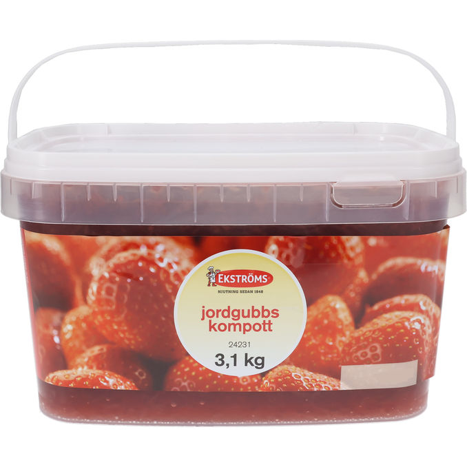 Denne jordbærskompot fra Ekströms har en blød konsistens og en frisk, sød smag af jordbær. Den store pakke på 3,1 kg er velegnet til catering og kan bruges som topping på desserter, grød eller yoghurt.