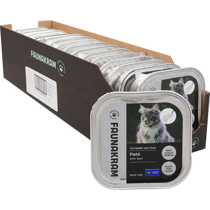 Denne 16-pak fra Faunakram indeholder klassisk oksekødspaté i praktiske portionsbakker, der sikrer din kat et friskt og proteinrigt måltid hver gang. Den bløde konsistens er både let at tygge og fordøje, hvilket gør den særdeles velegnet til kræsne katte eller katte, der foretrækker vådfoder.