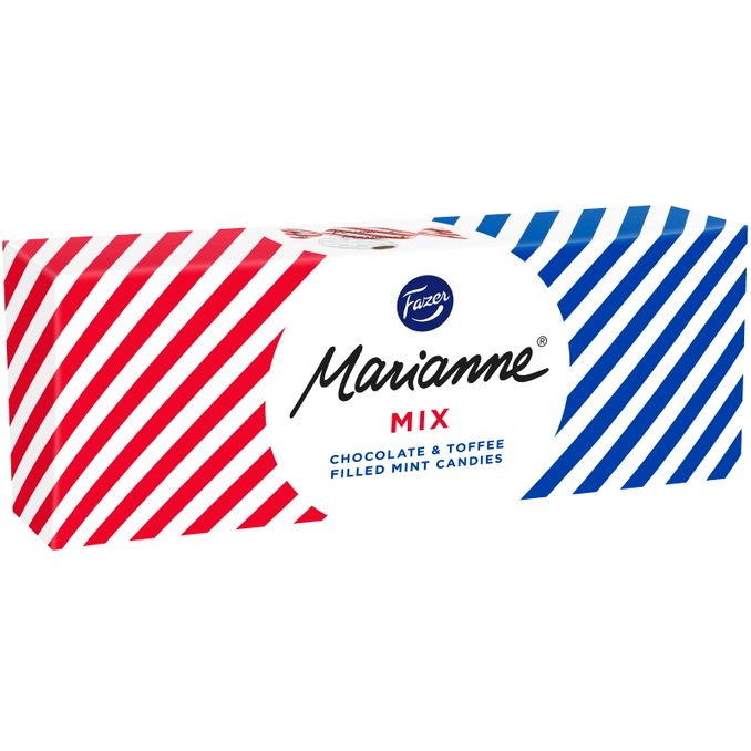 Marianne er de klassiske pebermynte slik med chokoladefyld. Men her kommer twistet med denne kasse. Dette inkluderer ikke kun den klassiske Marianne med chokoladefyld, men også Marianne med karamelpåfyldning.