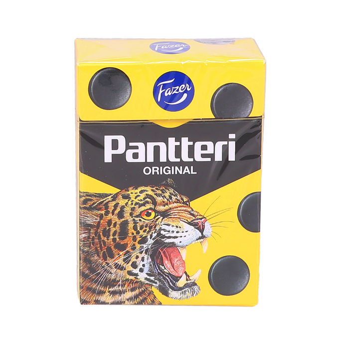 Fazer Pantteri Original Pastiller er en pose med 70 g af de klassiske finske lakridspastiller. Den unikke balance mellem saltlakrids og sødme giver en intens smagsoplevelse, der gør dem velegnede til både voksne og børn med hang til lakrids.