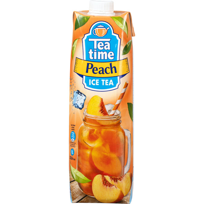 Tea Time Peach Ice Tea er en forfriskende og sødmefuld iste med en dejlig smag af modne ferskner og sort te. Denne 1 liters karton er ideel at servere iskold på en solskinsdag eller som et lækkert tilbehør til frokosten, når du ønsker en frugtig og læskende tørstslukker.