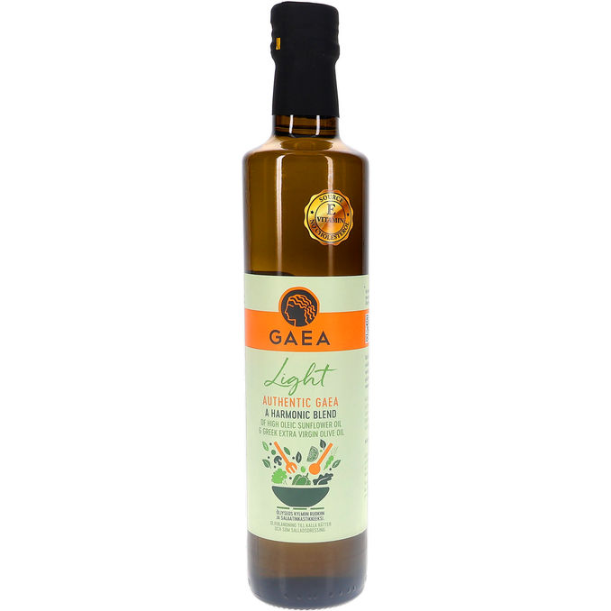 Gaea Light Solsikke- og Olivenolie 500 ml er en blanding af solsikkeolie og olivenolie, som giver en let og mild smag. Ideel til madlavning og bagning, hvor du ønsker en neutral olie.
