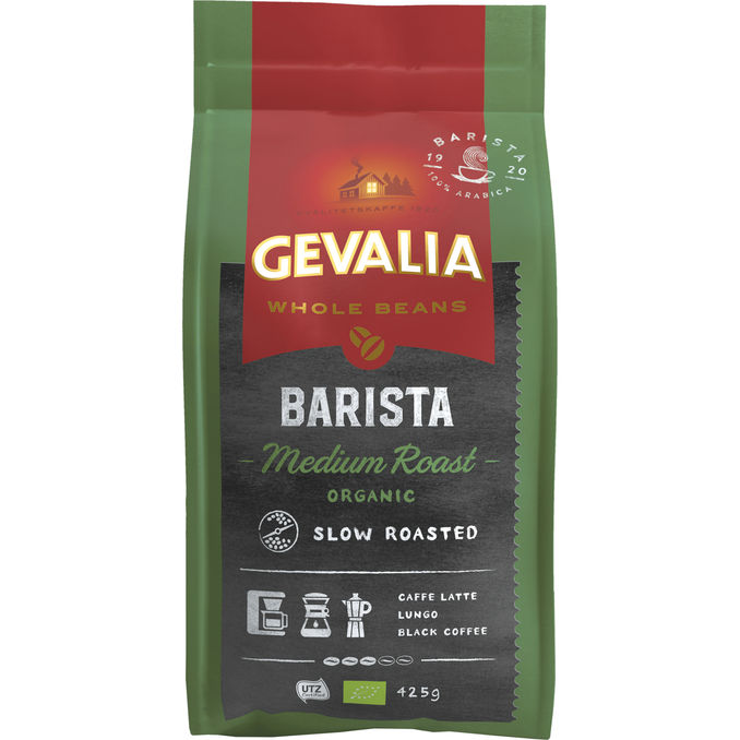 Hele medium roast bønner fra Gevalia har en rund og balanceret smag. Den indeholder økologiske Arabica bønner fra Latinamerika. I Barista serien bliver bønnerne ristet langsomt og desuden prøvesmagt en masse gange for at sikre den høje kvalitet. Mmmmm, hvem ville ikke have det job!