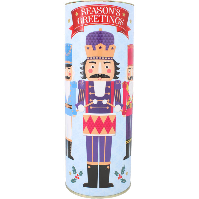 Grandma Wilds Tinæske med Nøddeknækker-motiv indeholder luksuriøse julekager med bidder af kandiseret ingefær. De sprøde småkager er bagt efter en traditionel opskrift, hvor den varme krydrede smag fra ingefæren komplementerer den søde og smørbagte dej. Den dekorative dåse med de klassiske nøddeknækker-figurer gør den særdeles velegnet som både samlerobjekt og en hyggelig julegave.