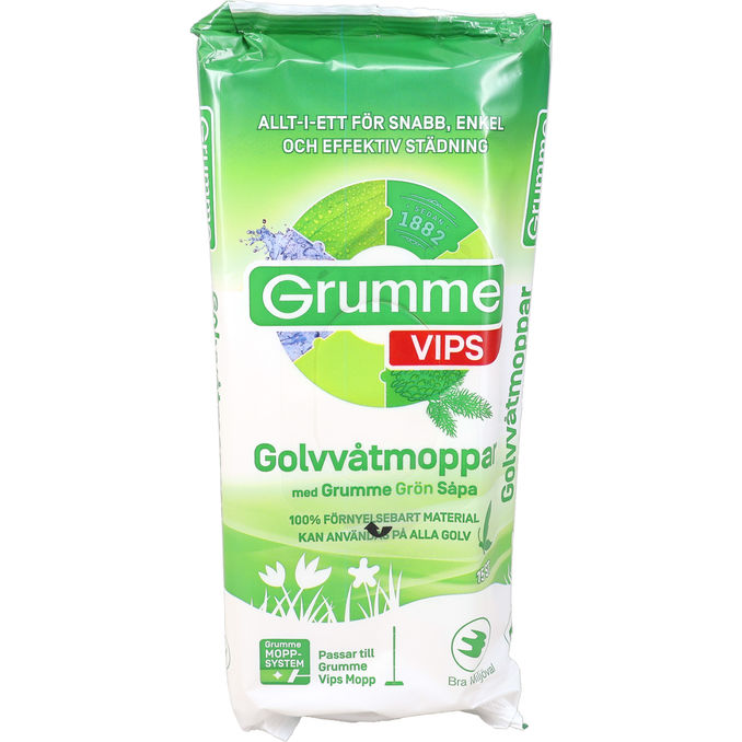 Gulvklude Wet Grøn Sæbe 15 Stk er en praktisk pakke med femten fugtige engangsgulvklude, der er klar til brug. De er perfekte til en hurtig og nem rengøring af dit gulv, da de effektivt fjerner snavs og efterlader en ren og velduftende overflade. Passer til Grumme Vips moppen og andre lignende mopper.