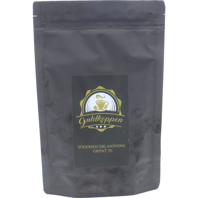 Guldkoppen Te Sydhavsblanding er en skøn og aromatisk grøn te, der kombinerer friskhed fra havtorn med den søde smag af jordbær.