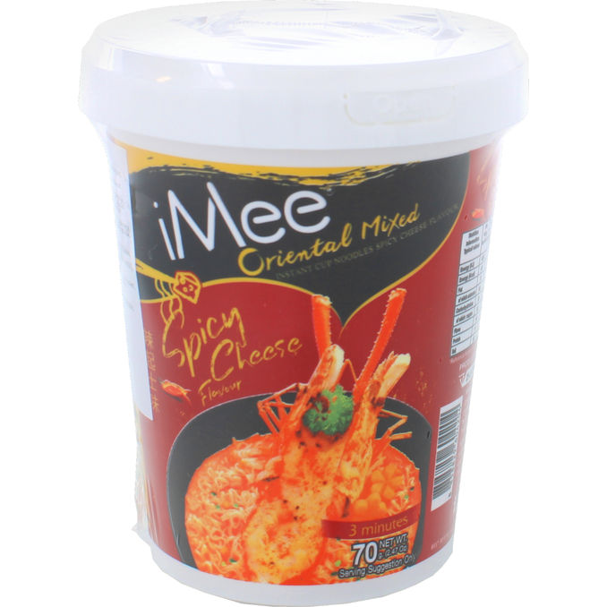 Imee Spicy Cheese Instant Nudler er en smagfuld kombination af stærke krydderier og en cremet ostesmag, der giver en intens og fyldig madoplevelse. De hurtigtilberedte nudler på 70 g er perfekte som et lille, varmt mellemmåltid med et ekstra spark af chili.