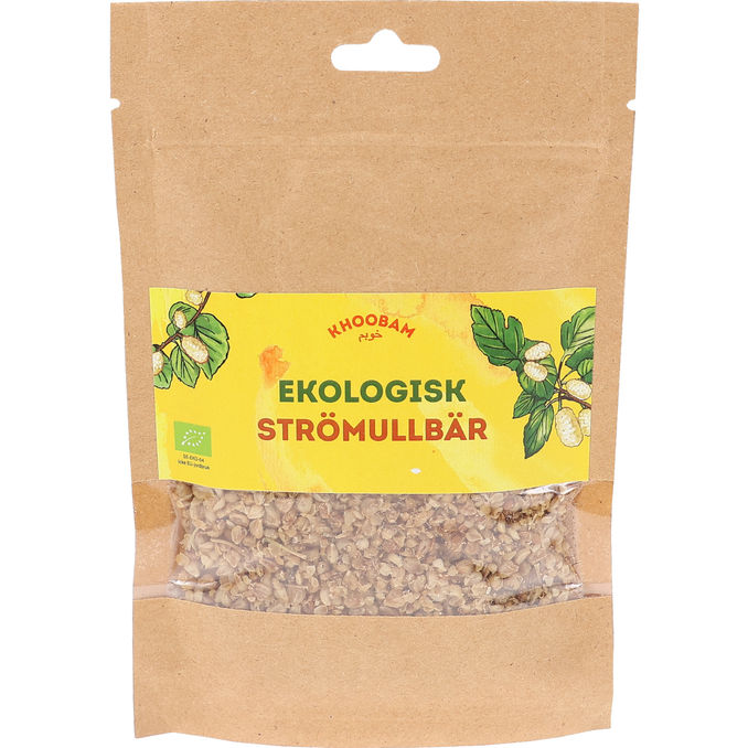 Khoobam Øko Morbær Strøssel er et økologisk produkt bestående af tørrede, knuste morbær, der tilføjer en naturlig sødme og et sprødt bid til din morgenmad. Posen på 100 g er ideel som topping på alt fra yoghurt og skyr til smoothies og grød, hvor den rige smag af bær virkelig kan træde frem.