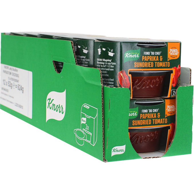 Fond ’Du Chef’ Paprika & Sundried Tomato er en fyldig grøntsagsfond, som giver varme, dybde og masser af smag til et væld af retter. Fonden er især velegnet til vegansk og vegetarisk madlavning. Prøv den også som base i forskellige supper, saucer eller gryderetter. Her i en 12-pak.