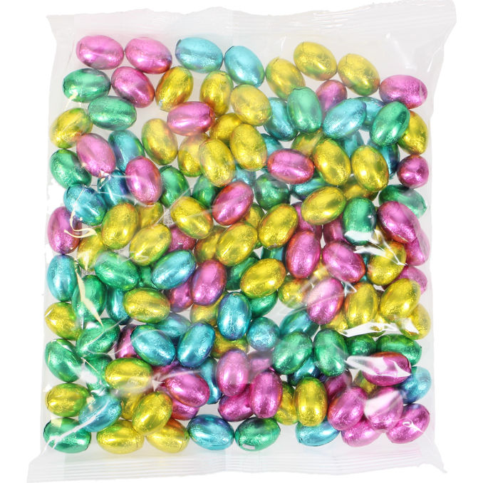 Disse små mælkechokoladeæg er indpakket i farvestrålende folie og er en klassisk favorit til påskens hyggestunder. Med en generøs mængde på 1 kg er posen ideel til påskeægsjagten, som pynt på påskebordet eller til at dele ud af til både store og små chokoladeelskere.