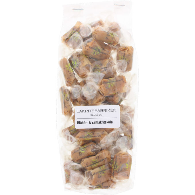 Lakritsfabriken Blåbær & Saltlakridskarameller 300 g er en eksklusiv og håndlavet delikatesse, der forener den friske, syrlige smag af svenske blåbær med den dybe, salte karakter fra kvalitetslakrids. Disse bløde karameller har en perfekt afbalanceret konsistens og er fremstillet med naturlige ingredienser, hvilket gør dem til en ideel gave eller til selvforkælelse, når den søde sult melder sig.