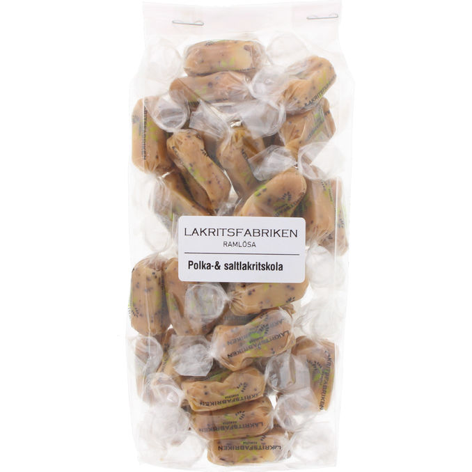 Lakritsfabriken Mynte- og Saltlakridskarameller 300 g er en forfriskende og intens kombination af kølig pebermynte og kraftig saltlakrids. De bløde karameller er fremstillet af naturlige ingredienser og er individuelt indpakket, hvilket bevarer den karakteristiske smag og gør dem nemme at dele som en luksuriøs godbid.