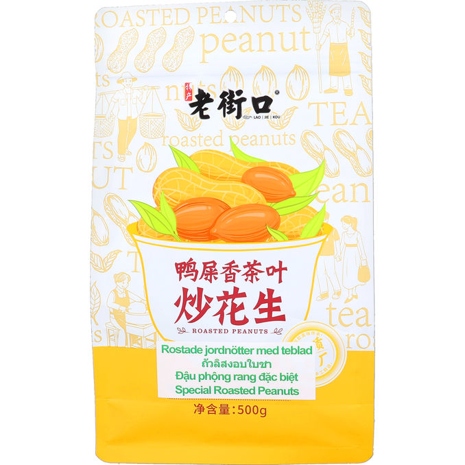 LaojieKou Ristede Jordnødder m. Teblade 500 g er en unik snack, hvor sprøde jordnødder er ristet sammen med aromatiske teblade for en dyb og let krydret smag. Den store pose er ideel til deling og giver en autentisk asiatisk smagsoplevelse med et sofistikeret strejf af te.