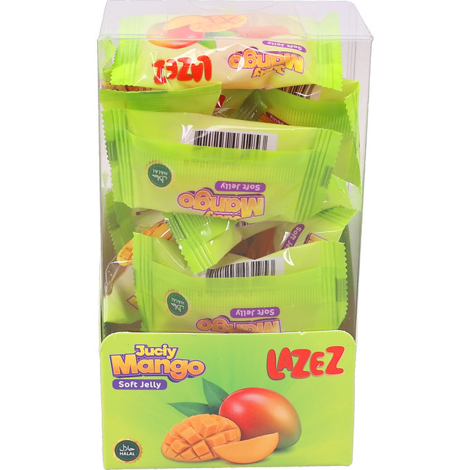 Lazez Juciy Mango Soft Jelly er en blød og lækker gelé-snack med en autentisk og sødmefuld smag af moden mango. De små frugtgummier er individuelt indpakket, hvilket gør dem praktiske at have med på farten eller som en lille godbid i madpakken. Produktet tilbyder en eksotisk smagsoplevelse for både børn og voksne.