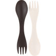 Light My Fire Spork Little 2-pak Cocoa/Cream er et holdbart og genanvendeligt spisesæt i børnestørrelse, der kombinerer ske og gaffel i ét smart redskab. Sættet er fremstillet af biobaseret plast og er designet med afrundede kanter, så det er sikkert og nemt for små hænder at bruge til madpakken eller på tur.