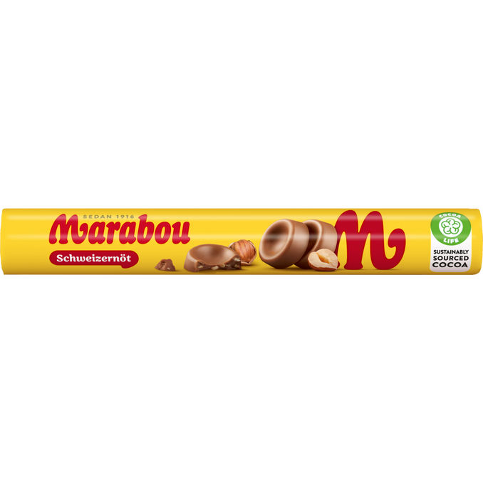 Lækker rulle, som indeholder den klassiske marabou mælkechokolade, samt Schwerisernød.