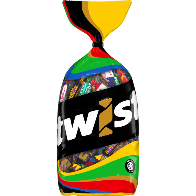 Denne store pakke Twist kombinerer alle dine yndlings smagsvarianter i én pakke, der giver en alsidig og lækker oplevelse. Perfekt til at dele eller nyde som en særlig snack.