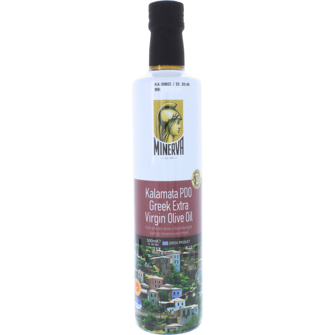 Minerva Ekstra Jomfru Olivenolie 500 ml er en højkvalitets olivenolie presset af friske oliven, der byder på en afbalanceret og fyldig smag. Den er perfekt til at fremhæve smagen i salater, dressinger og marinader, eller som en aromatisk dip til brød.