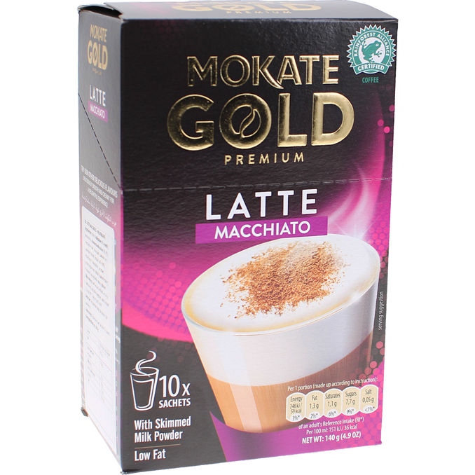 Mokate Instant kaffe Latte Macchiato kommer her i en 10-pak. Godt at have i gemmerne når der kommer uventede gæster.