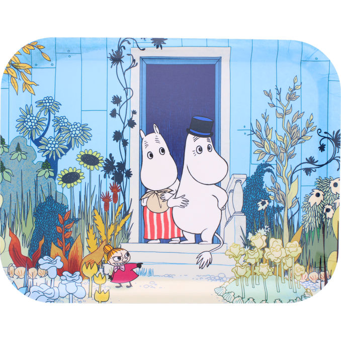 Denne serveringsbakke i klassisk Mumistil er fremstillet af holdbart materiale og egner sig perfekt til frokostbordet eller som dekorativt element. Den alsidige størrelse gør den velegnet til både hverdagsbrug og selskaber.