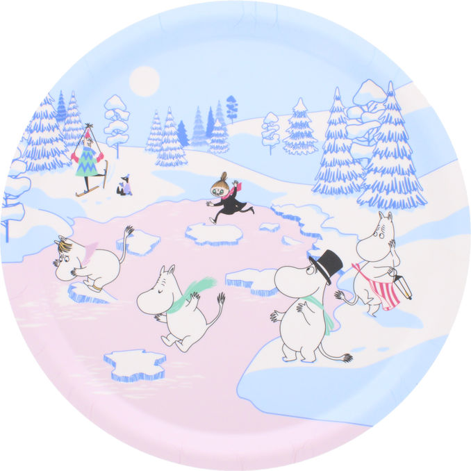 Denne runde Moomin-serveringsbakke (Ø 31 cm) har et smukt motiv inspireret af originale illustrationer fra Moomin og er lavet af holdbart birkekrydsfiner, hvilket gør den både dekorativ og funktionel i køkkenet. Den er perfekt til servering af kaffe, morgenmad eller snacks og tilføjer et legesygt og stilfuldt touch til din borddækning.