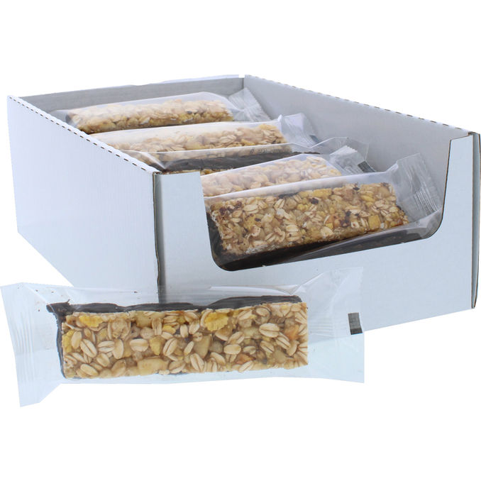 En velsmagende müslibar med banan, der byder på en perfekt kombination af sødme og knas. Den er ideel som en energigivende snack eller en hurtig morgenmad på farten.