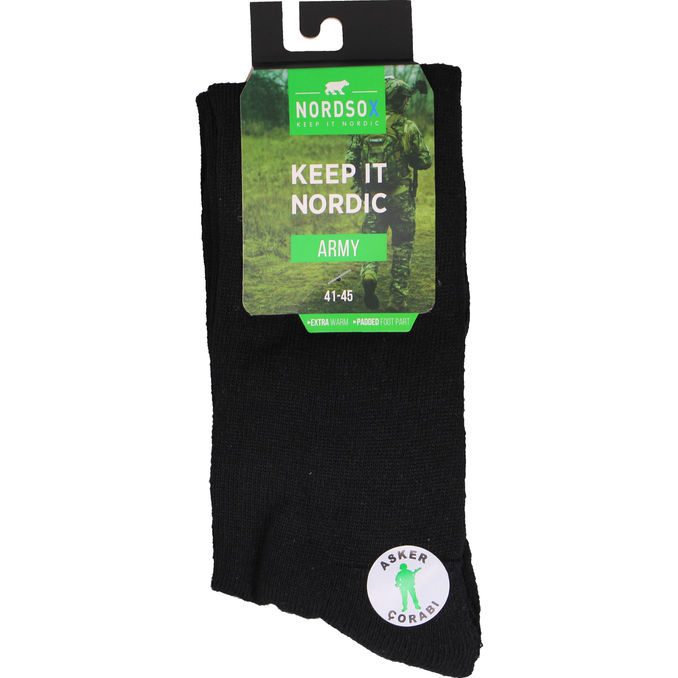 Nordso Army Strømper i størrelse 41/45 er robuste og slidstærke strømper designet til optimal komfort under fysisk aktivitet udendørs. De er ekstra varme og leveres i enten en klassisk sort eller en olivengrøn farve, hvilket gør dem ideelle til både outdoor-brug og en praktisk hverdag.