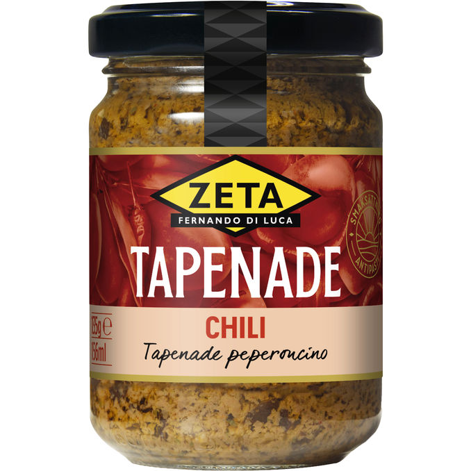 Zeta Tapenade Peperoncino Chili 140 g er en velsmagende tapenade, der kombinerer oliven med et intenst og krydret pift af peperoncino chili. Den er perfekt til at nyde på brød, som et velsmagende pift i pastaretter eller som et krydret supplement til tapas.