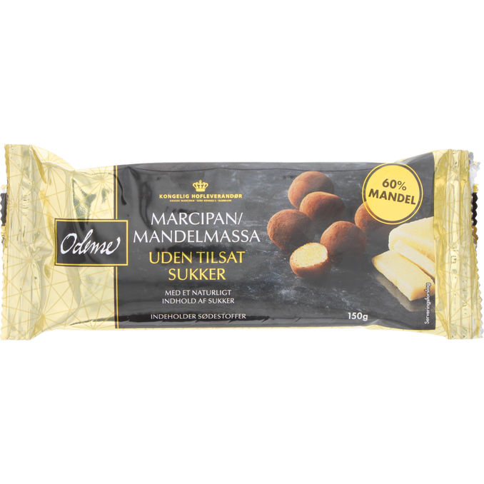 Odense Marcipan u. Tilsat Sukker 150 g er en klassisk kvalitetsmarcipan, hvor det tilsatte sukker er erstattet med sødestoffer, uden at gå på kompromis med den gode smag af mandler. Den har et højt mandelindhold og er perfekt til både konfekt, bagværk eller som en lækker snack til dem, der ønsker at spare på sukkeret.