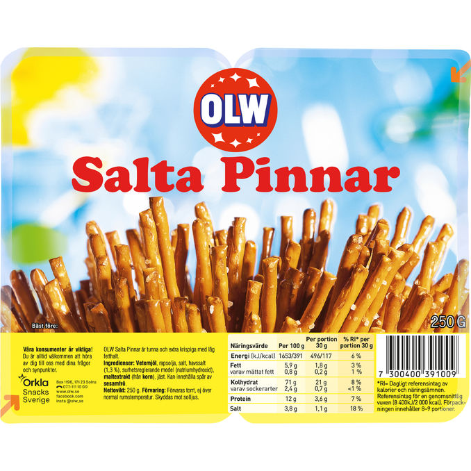 Lækre saltstænger fra OLW. Til at sætte på bordet under børnefødselsdage, når du har gæster, eller bare har en lille snack sult.
