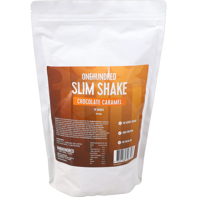 OnetoHundred Slim Shake Chocolate Caramel 450 g er en næringsrig måltidserstatning i pulverform med en lækker smag af chokolade og karamel. Den er perfekt til at understøtte vægttab og vægtkontrol på en nem og bekvem måde, ideel som et hurtigt og mættende måltid på farten.