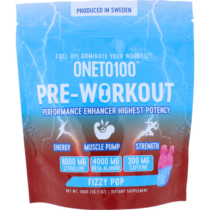 Onetohundred Pre-workout Fizzy Pop 300g er et effektivt kosttilskud i pulverform, der er designet til at give dig et energiboost og forbedre fokus før træning med en forfriskende "fizzy pop" smag. Det er perfekt til at optimere din ydeevne og maksimere dine resultater under træning.