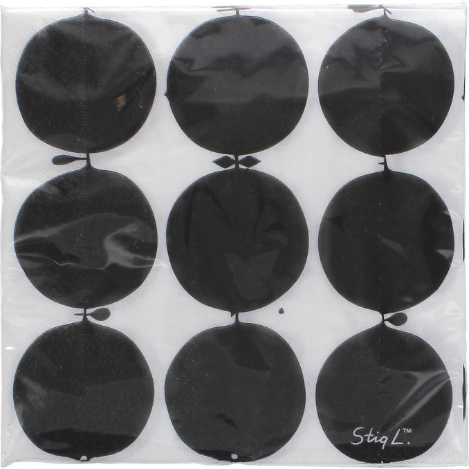 Optodesign Servietter Stig L. Sorte Frugter er prydet med Stig Lindbergs klassiske og grafiske motiv, der bringer retro-inspireret skandinavisk design direkte til bordet. De stilfulde servietter i sort og hvid kombinerer kunstnerisk elegance med funktionalitet, hvilket gør dem til et sofistikeret valg til både moderne og klassiske borddækninger.