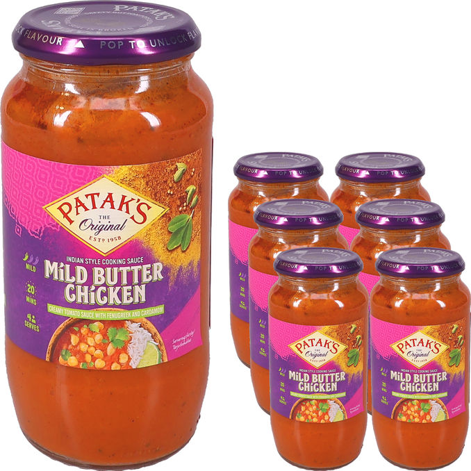 Patak's Mild Butter Chicken er en fyldig og cremet indisk madlavningssauce baseret på tomater, krydret med bukkehornskløver og kardemomme. Saucen gør det nemt at tilberede en autentisk og mild indisk klassiker på kun 20 minutter, som hele familien kan nyde.