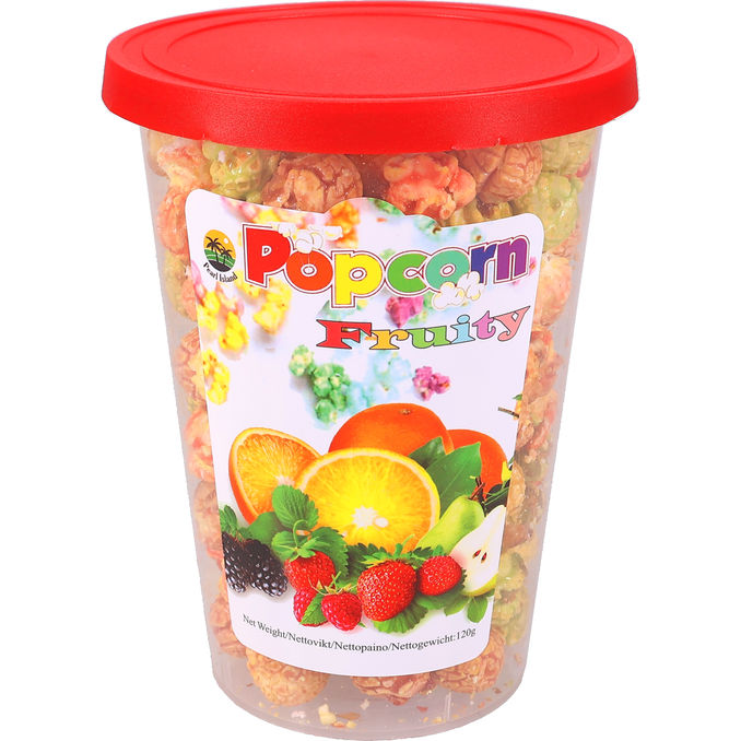 Pearl Island Popcorn Fruity er en sjov og farverig snackoplevelse, der kombinerer sprøde popcorn med en sød og varieret frugtsmag. De flerfarvede popcorn bringer glæde til både børn og voksne og er perfekte til fødselsdage eller som en festlig overraskelse i hverdagen. Snack’en leveres i en praktisk, genanvendelig bøtte på 120g, der holder indholdet friskt og sprødt.