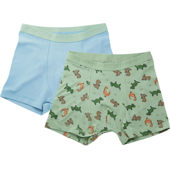Denne 2-pak boxershorts til drenge i lyseblå og mintgrøn med sjovt krokodilleprint er både behagelige og praktiske til hverdagen. De er fremstillet af 95% økologisk bomuld og 5% elastan, hvilket sikrer en blød kvalitet med god pasform og bevægelsesfrihed.