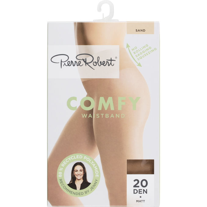 Pierre Robert Comfy Waistband strømpebukser i 20 denier er designet med ultimativ komfort for øje. Den brede, bløde linning sikrer, at strømpebukserne hverken ruller, strammer eller falder ned, mens den matte finish giver et elegant og naturligt look til både hverdag og fest.