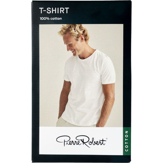 Pierre Robert T-shirt er en klassisk basisoverdel fremstillet i blød og åndbar økologisk bomuld. Den har et tidløst, lige snit med rund hals og er designet uden irriterende mærker i nakken for optimal komfort. T-shirten er alsidig og fungerer perfekt både som undertrøje eller som en enkel overdel til et afslappet hverdagslook.